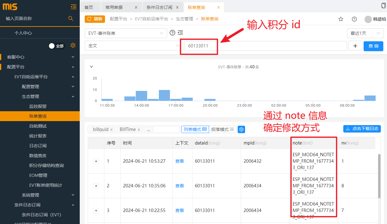 在 数据库云平台 中找到该实例,积分的校对与批处理(提工单)都是从该实例进入:
