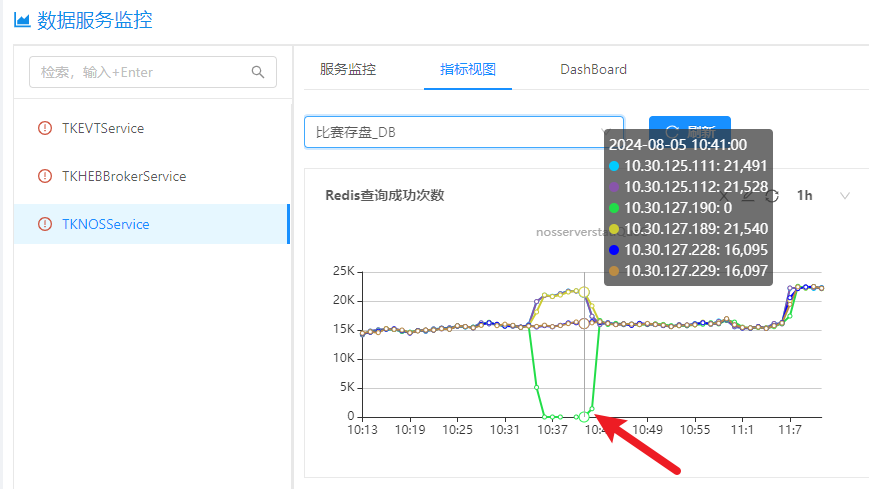 - 下图所示,就是在重启 10.30.127.190 实例上的服务过程中,CMA 相关监控的变化情况。