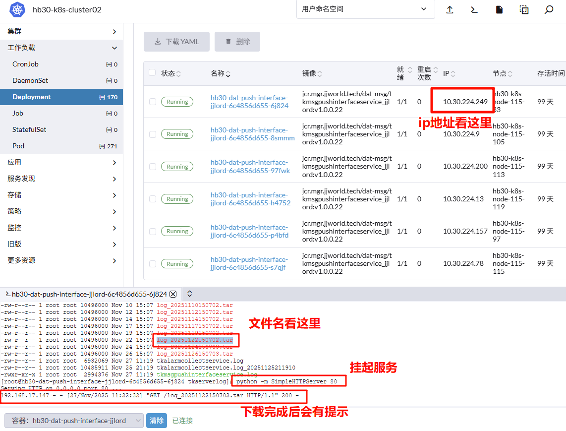 或用如下命令访问文件夹列表:(下载完记得回 Pod 里把 SimpleHTTPServer 关掉)